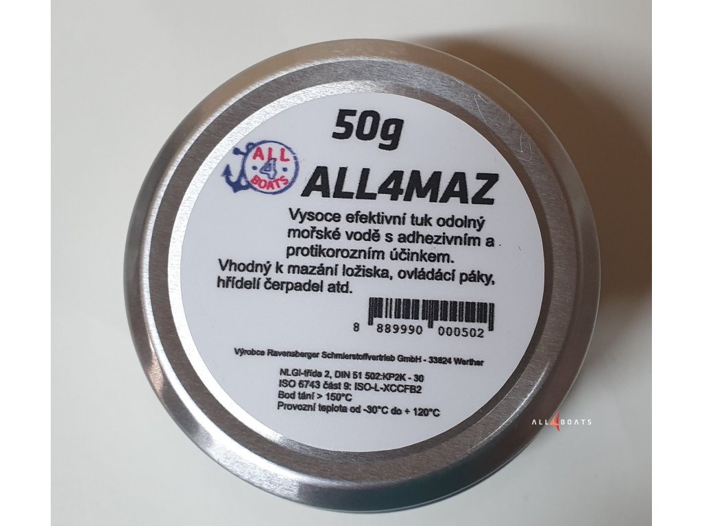 Vysoce efektivní mazací tuk odolný i mořské vodě s adhezivním a protikorozním účinkem. Vhodné k mazání ložisek, ovládacích pák, lanovodů, hřídelí atd.. Teplotní rozsah maziva je od -30°C do +120°C. Vyrobeno v Německu.