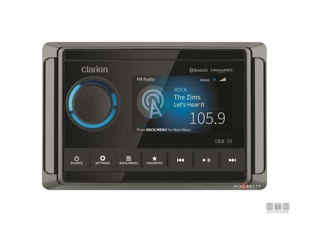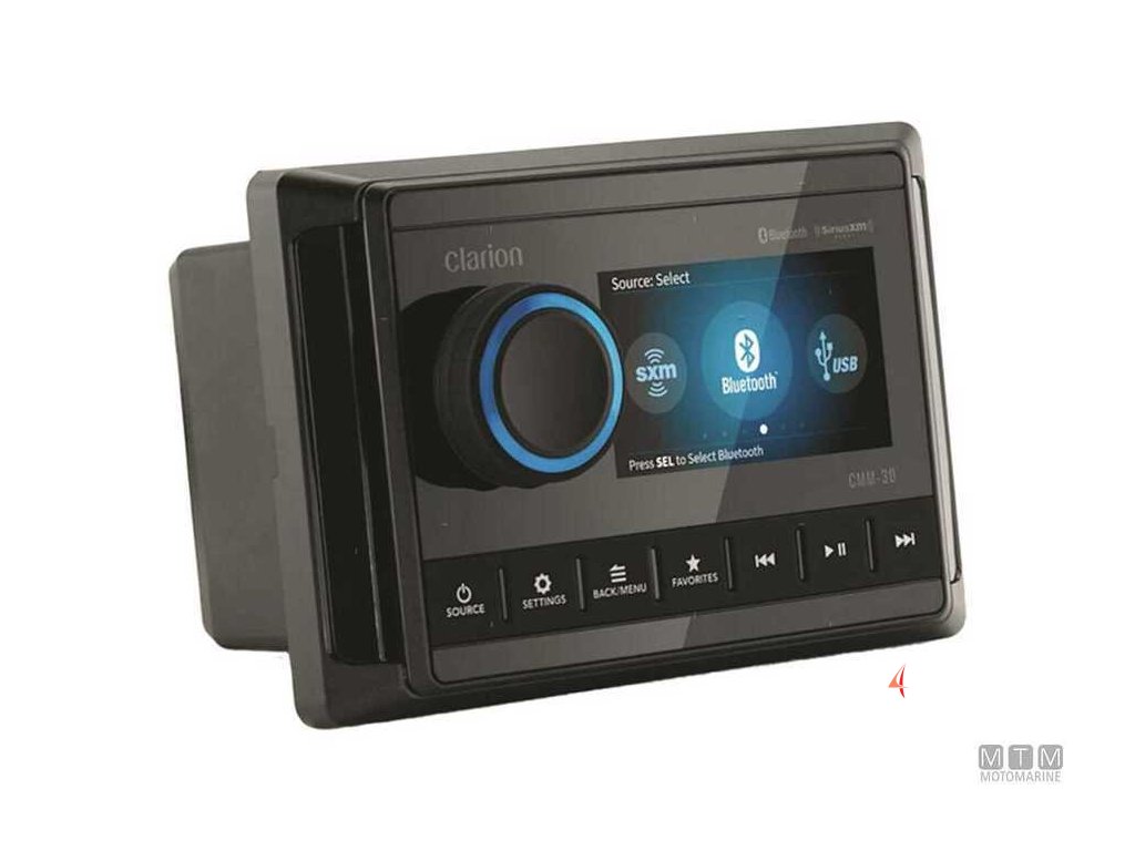 Clarion CMM-30 je prémiová mořská audio jednotka navržená pro použití na člunech, jachtách a lodích. Díky robustnímu voděodolnému provedení (IP66) odolá stříkající vodě a vlhkosti, což ji předurčuje pro paluby i kajuty. Barevný, dobře čitelný displej spolu s velkými tlačítky a intuitivním ovládáním usnadňuje použití i v pohybu.