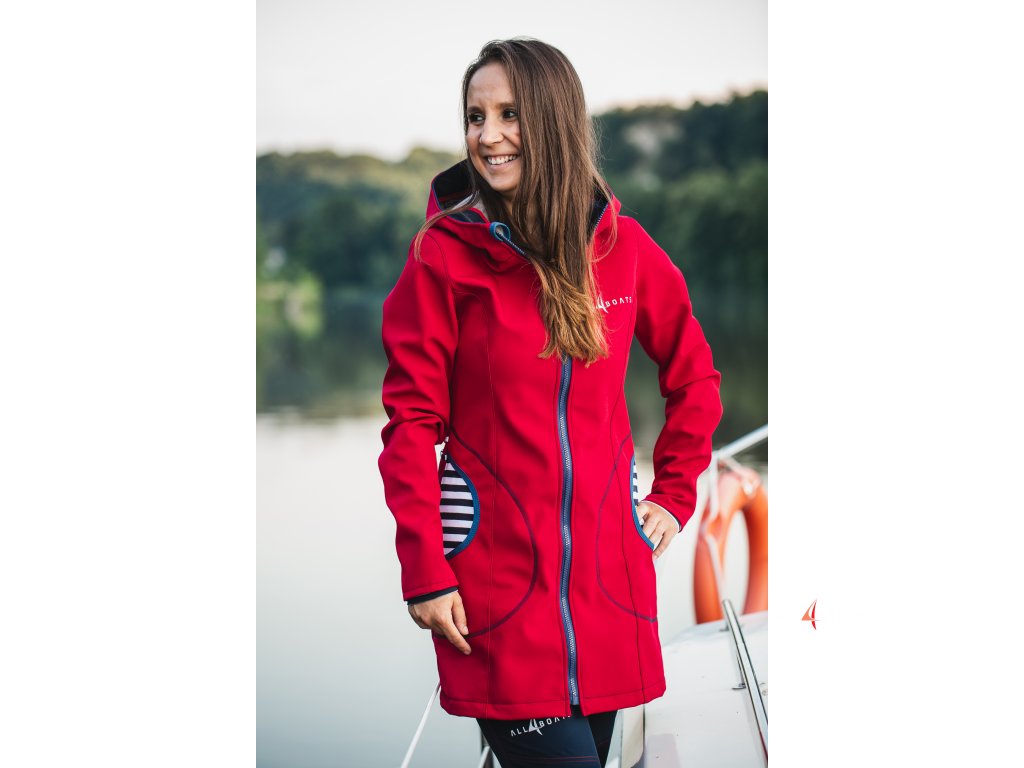 Dámský softshellový kabát červený rovný