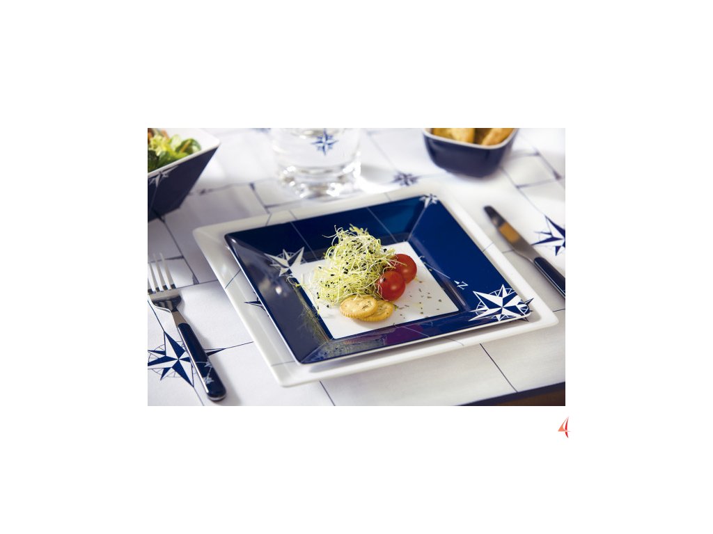 - Stylový vzhled: Elegantní čtvercový tvar a námořní design dodají každé tabuli šmrnc.
