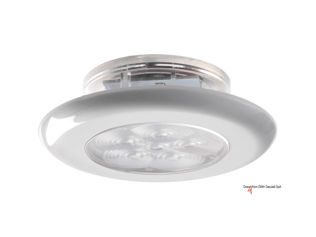 LED stropní světlo, obsahuje 6 led diod, pro 12V / 24V, bílý plast, včetne kroužku pro povrchovou montáž.