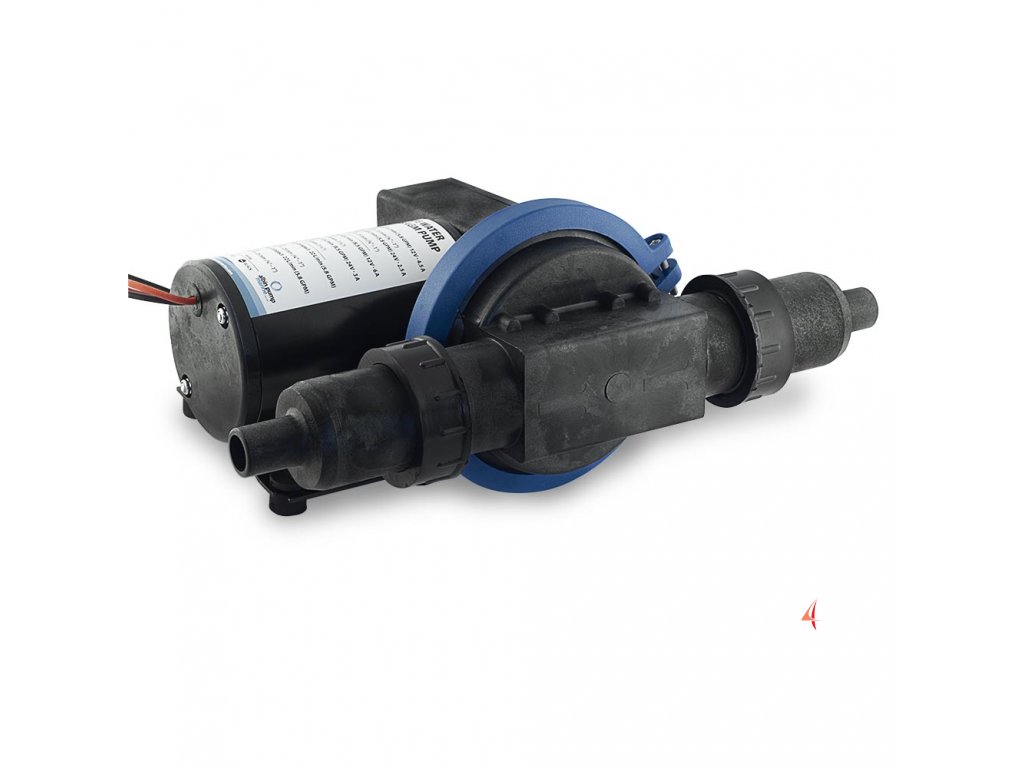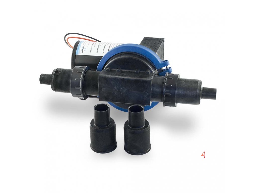 Jednokomorové, samonasávací, membránové čerpadlo 12V pro šedou nebo útorovou vodu. Odtok sprchy, přenos nebo odsávání. Kapacita 22 l / min (5,8 GPM), flexibilní instalace s 360 stupňovými otočnými vstupy. Tichý provoz a nízká spotřeba energie. Pracuje bez potřeby filtru. Včetně 19mm (3/4 ″) a 25mm (1 ″) přímých konektorů. Pojistka 4,5A. Zaměnitelné s Johnson Pump 10-13350-03.