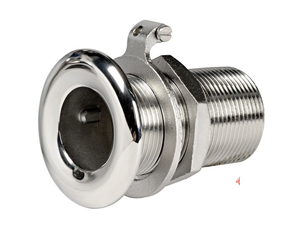 Nerezová průchodka skrz trup se závitem. Vyrobeno z leštěné oceli AISI 316. Vybaveno přípojkou pro uzemnění.