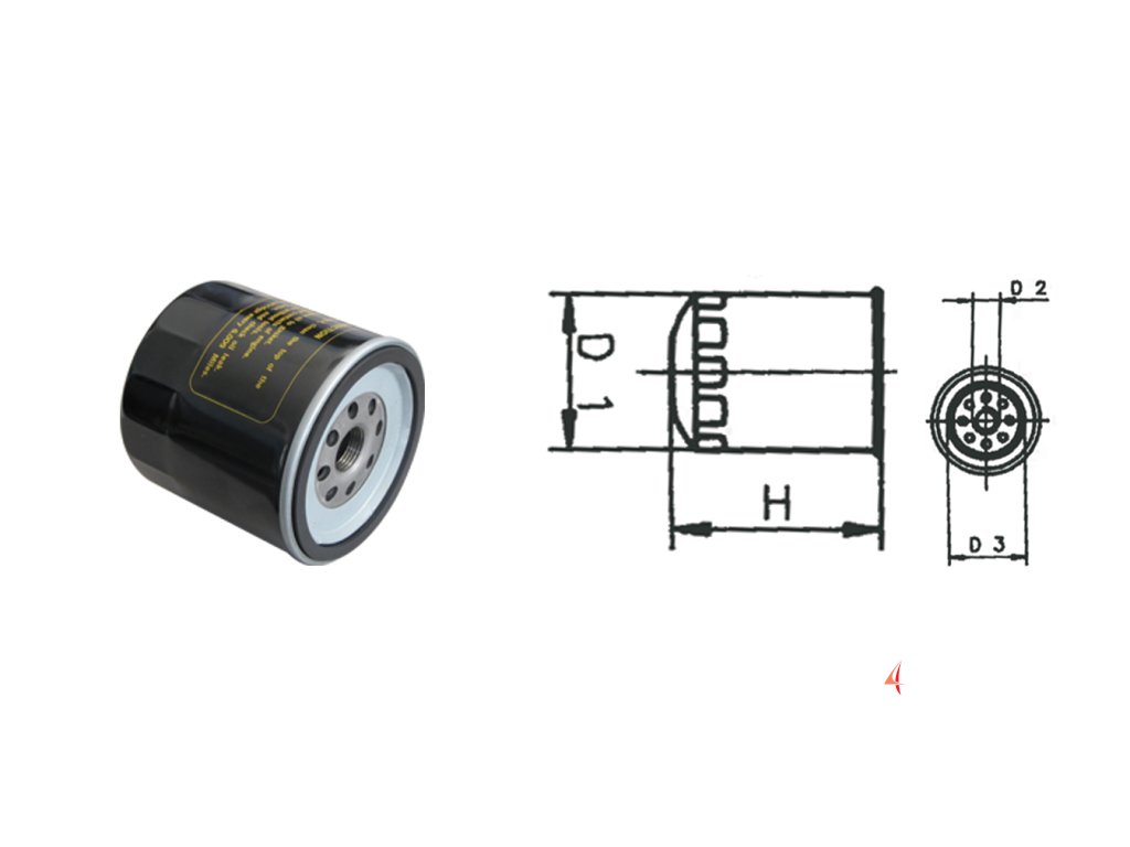 Olejový filtr F115, F75, F90 a LF115, originální číslo 5GH-13440-70, rozměry D1 - 66mm, D2 - M20 x 1,5mm, D3 - 48mm, H - 72mm