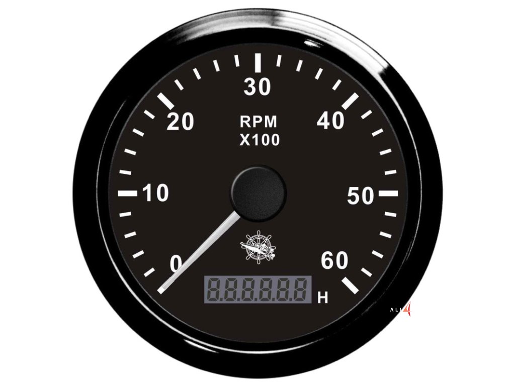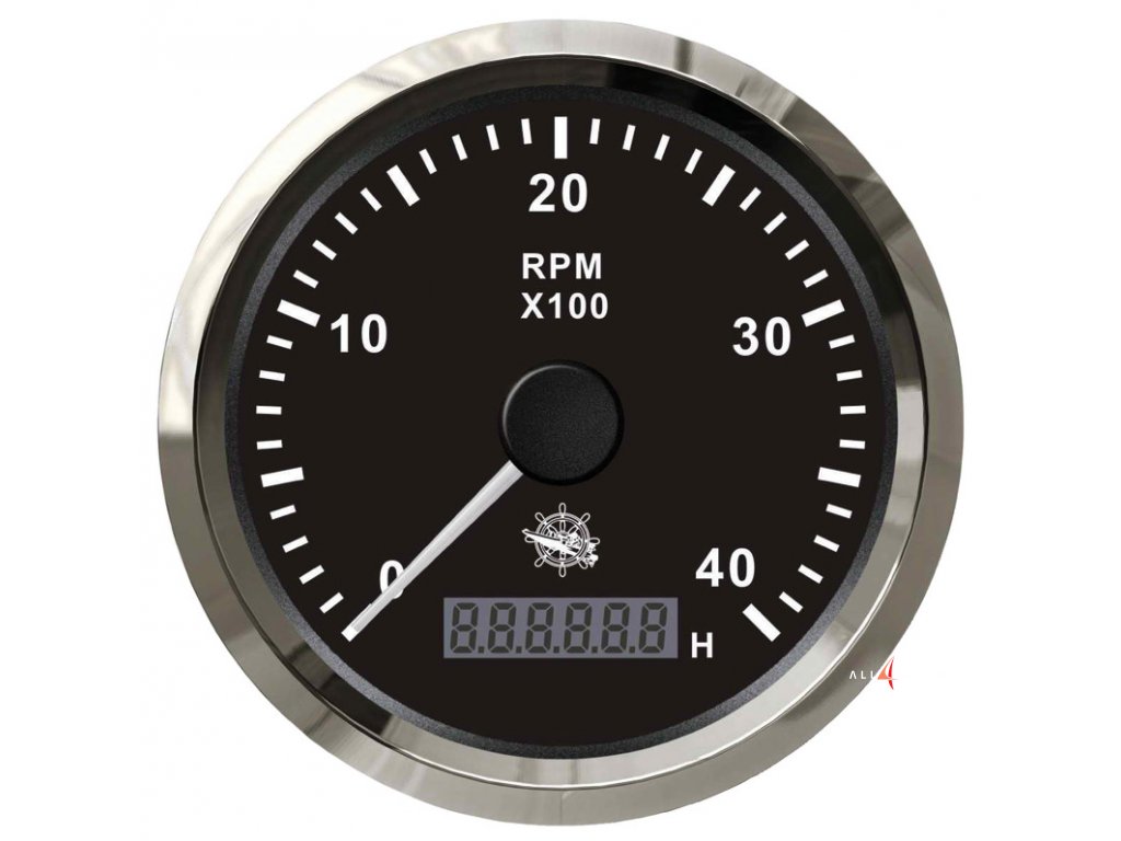 Otáčkoměr 0-4000 ot./min. Připojení ke svorce "w" alternátoru. Červeně a žlutě podsvícený ciferník. Otvor Ø 85mm.
