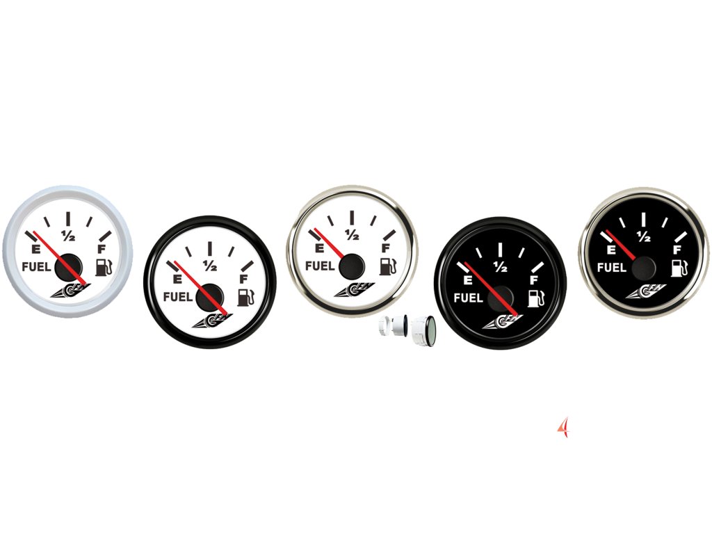 Palivoměr GNF 10 - 180 Ohm, zapuštěný, montážní průměr 52mm. Vodotěsnost IP67 , podsvětlený. Obal voltmetru je z technopolymeru, nemlžící se sklo.
