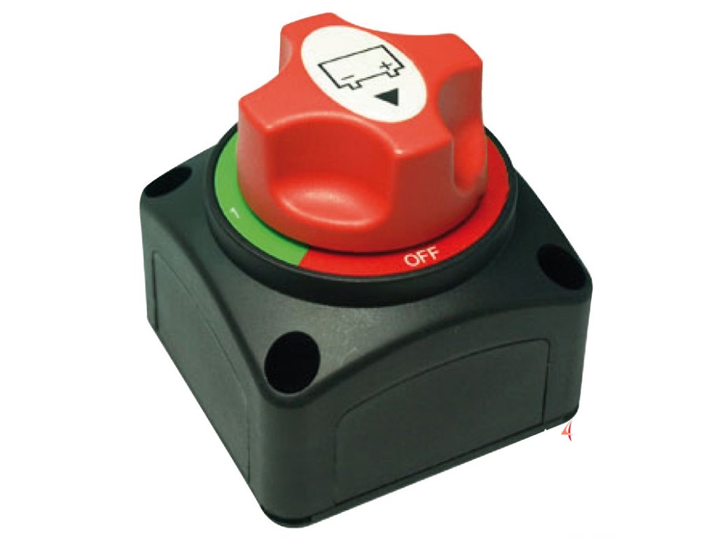 Odpojovač baterie, Max kapacita 50V DC - trvale 300 A, Ø čepů 10mm, rozměr 69x69x74 h