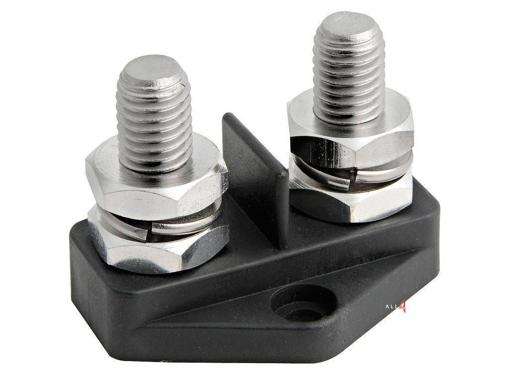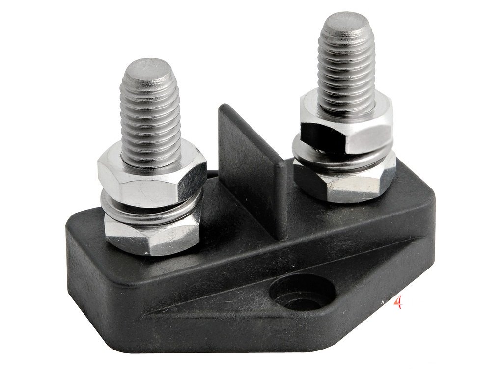 Propojovací - kostřící bod s izolovanou základnou. Vhodný pro vysoké proudové zatížení, nerezový čep s chromovanými mosaznými maticemi