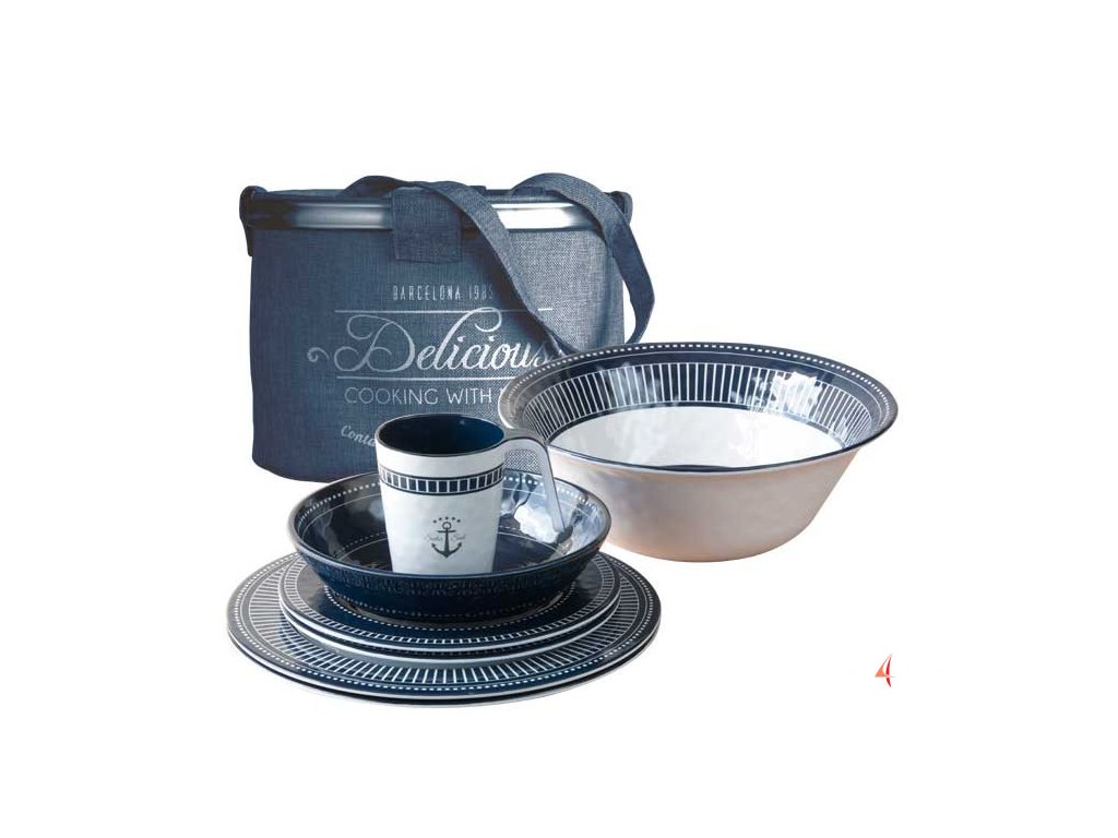 13dílná sada nádobí Sailor Soul pro lodě je praktická melaminová sada pro 4 osoby. Skládá se ze 4 jídelních talířů, 4 misek na polévku, 1 salátové mísy a 4 stohovatelných hrnků. Všechny kusy jsou vyrobeny z nerozbitného melaminu a jsou baleny v elegantním koši, který lze použít k uložení melaminového nádobí nebo jako košík na ovoce nebo k uložení dalších námořních doplňků. Všechny kusy lze zakoupit samostatně. K dispozici je také 24 dílná sada nádobí pro 6 osob. Výrobky z melaminu jsou určeny pro servírování jídla, nikoli k jeho vaření. Nepoužívat v troubě nebo mikrovlnné troubě. Vhodné pro myčky nádobí. Chcete-li si zachovat lesk, nepoužívejte abrazivní čisticí prostředky. Chcete-li zabránit skvrnám způsobeným čajem nebo kávou, doporučujeme šálky ihned po použití umýt. Jakékoli nesrovnalosti v designu a rozdíly v těchto nesrovnalostech jsou součástí výrobního procesu a neměly by být považovány za vady. „Koš: Ruční mytí. Nepoužívejte bělidlo. Není vhodné do pračky. Nepoužívejte sušičku. Není vhodné žehlit.