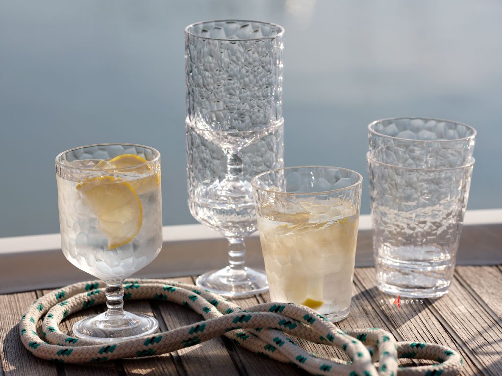 Nápojové sklo Northwind je vyrobeno z MS, vysoce kvalitního, nárazuvzdorného a nerozbitného materiálu, který je také obtížně poškrábatelný. Použití tohoto materiálu na palubě zamezí možným nehodám s rozbitým sklem. Tato sklenice je ideální jako sklenice na párty a lze jej sladit s dalšími námořními doplňky, jako je sada na občerstvení, a nosit je na speciálním protiskluzovém podnosu od Party Collection. Tento produkt byl navržen pro použití v normálních, nikoli extrémních podmínkách. Není vhodné pro nápoje s vysokým obsahem alkoholu nebo velmi horké nápoje. Není vhodné pro mikrovlnné trouby. Vhodné pro myčky nádobí, ale pouze v horním koši. Chcete-li prodloužit životnost výrobku, nepoužívejte abrazivní čisticí prostředky.