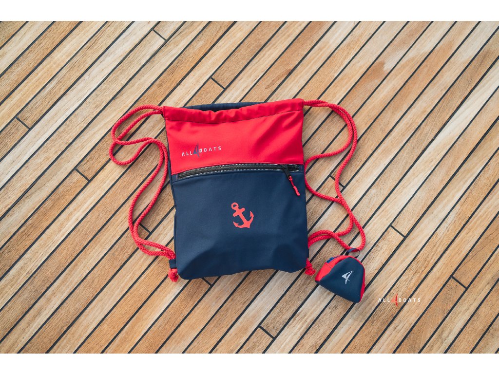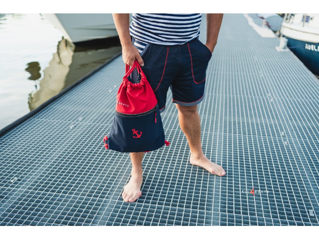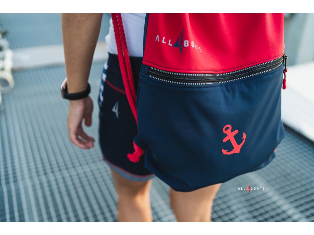 Softshellový vak bez uch, ze kterého jednoduše uděláte i takšu přes rameno. Jako popruhy jsme použili tlusté barevné šňůry, které perfektně doplňují design produktu. Vaky jsou ušité, tak aby seděly na ke kolekci oblečení all4boats. Šnůru můžete jednoduše zkrátit uzlem. Po otevření reflexního zipu najdete prostornou kapsu, která sahá až na dno vaku a šňůrku s karabinou na klíče. Díky tomu, že je vak ušití ze softshellu, jen tak vám nepromokne, je pevný, dobře drží tvar. Případné nečistotu můžete otírat hadříkem. Můžete jej i impregnovat. Nažehlený obrázek je zároveň reflexním prvkem. Rozměry vaku jsou 37 cm šířka, 42 cm výška, 5 cm šířka dna. V hlavním prostoru vaku je také našitá velmi praktická kapsa např. na lahev na pití. Už nikdy se vám ve vaku nepřeklopí a nevylije. :D. Materiál: celoroční softshell (na rubové straně je fleecová vrtsva) - 100% polyester + PU membrána, vodní sloupec 10 000 mm, prodyšnost 3 000 g / m2 / 24 hod