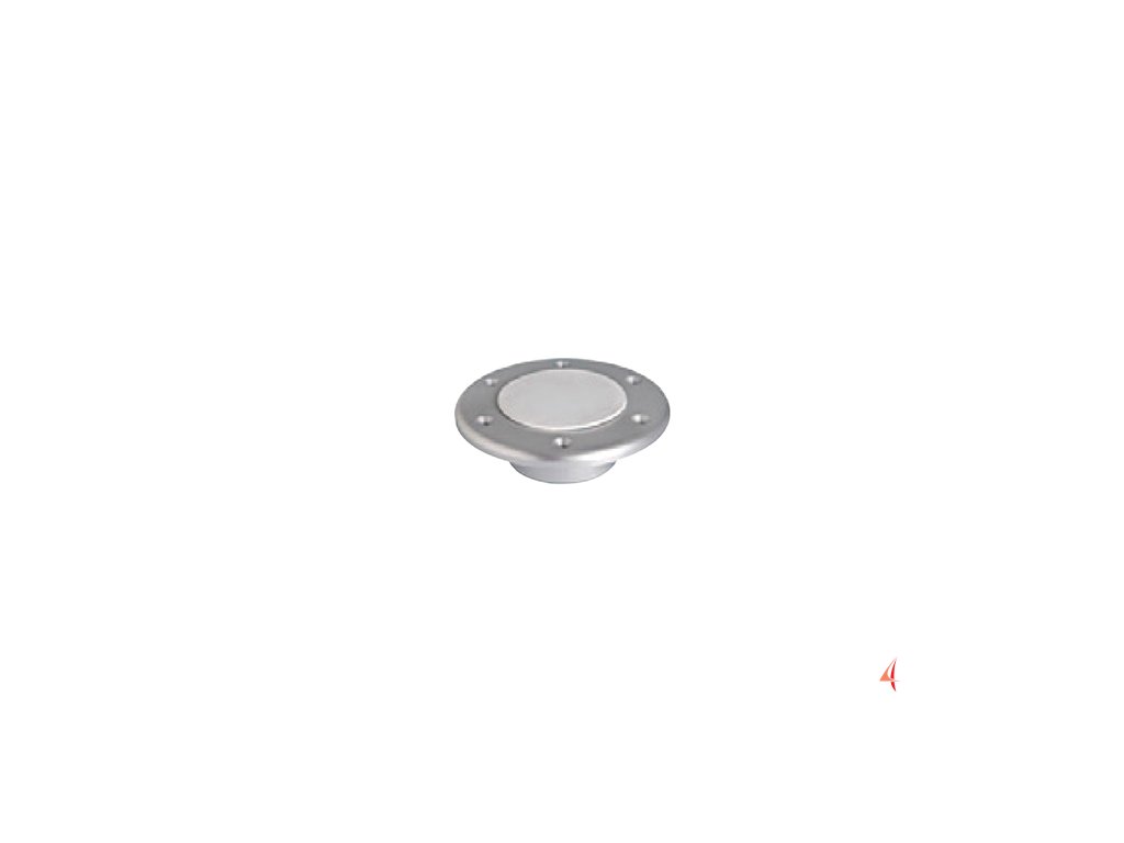 Hliník s plastovou krytkou, na kónické i šroubovací nohy, Ø 150 mm. Jeho výška nad povrchem paluby je 9,5 mm.