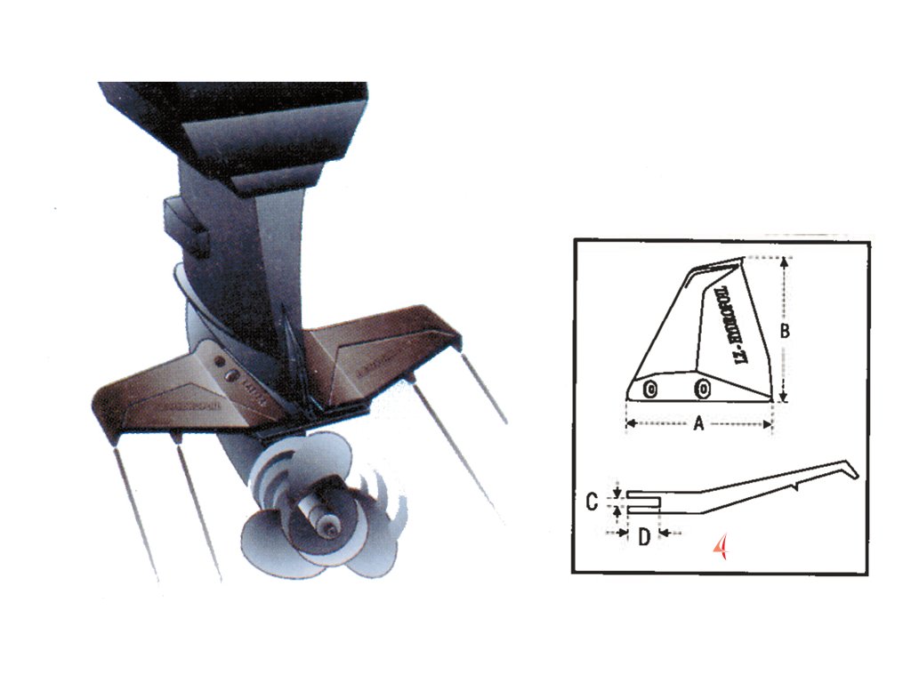 STREAMLINOVANÝ STABILIZAČNÍ SYSTÉM, Křídlové profily vyrobené z kompozitního materiálu, pomocí křídlových profilů, se snižuje spotřeba paliva, navigace je mnohem plynulejší, stabilita se zvyšuje a zároveň nabízí maximální zdvih, což snižuje kavitaci. Křídla také pomáhají lodi snadno ořezávat. Dodává se se šrouby z nerezové oceli .
