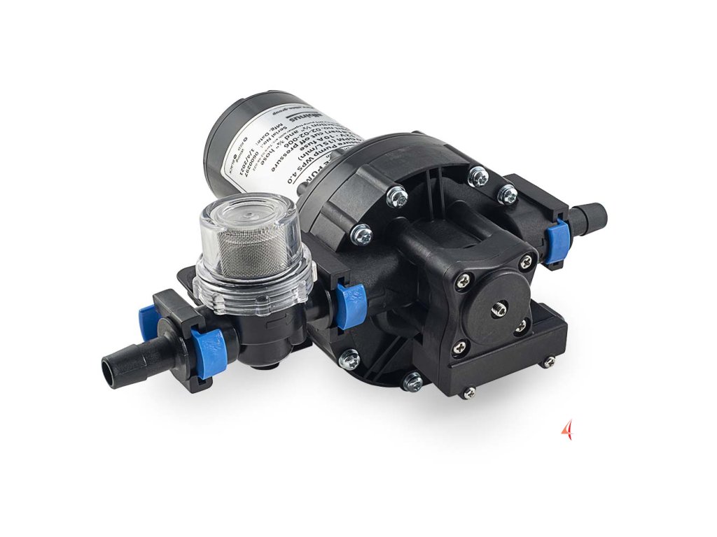 Prémiové vodní tlakové čerpadlo 12V s výkonem 20l/min (5,3GPM). Pro nepřetržitou dodávku tlakové vody na vyžádání. Vypínací tlak 2,8 bar (40 psi). Extra odolný utěsněný tlakový spínač, plynulý a bezpulsující průtok, velmi tichý provoz. Snadná instalace pomocí rychlo připojovacích portů pro 1/2" nebo 3/4" hadici, včetně vstupního sítka 40 mesh. Velikost pojistky 15A.