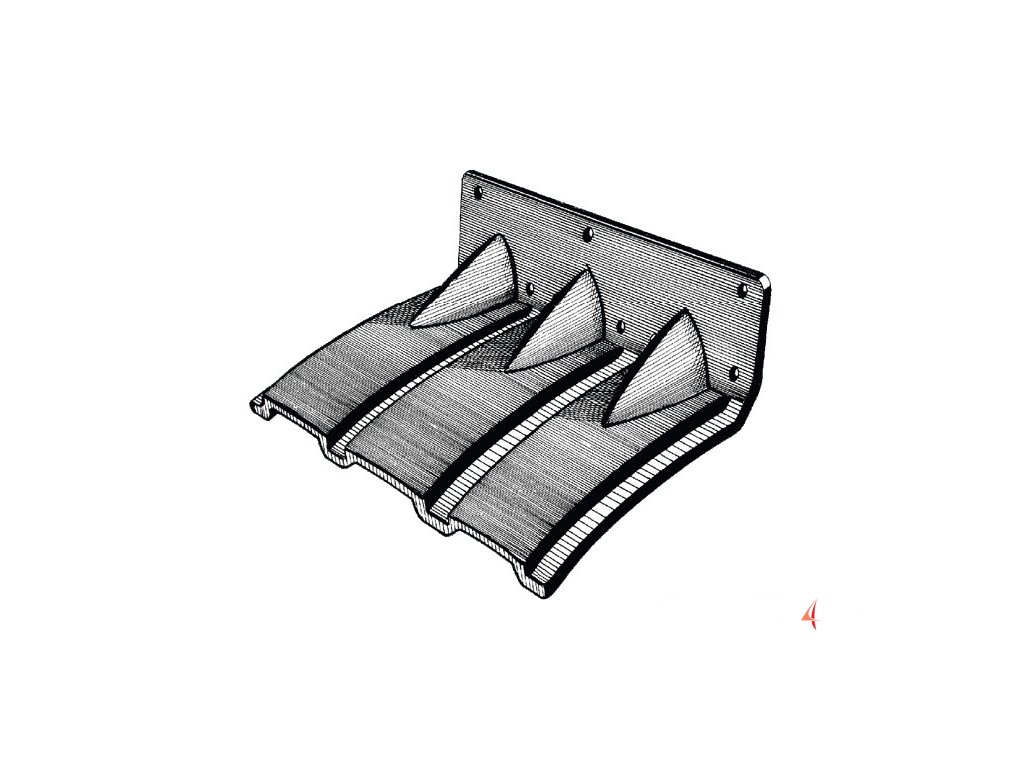 Trimovací klapky ze zesíleného polyeyhylenu, samonastavitelné. Speciální tvar a žebrování, zpočátku napomáhá vyrovnat trup, zvyšuje se, vyrovnává se s trupem, jak se zvyšuje rychlost, což zajišťuje dokonalý postoj a stabilitu; snadná univerzální instalace.