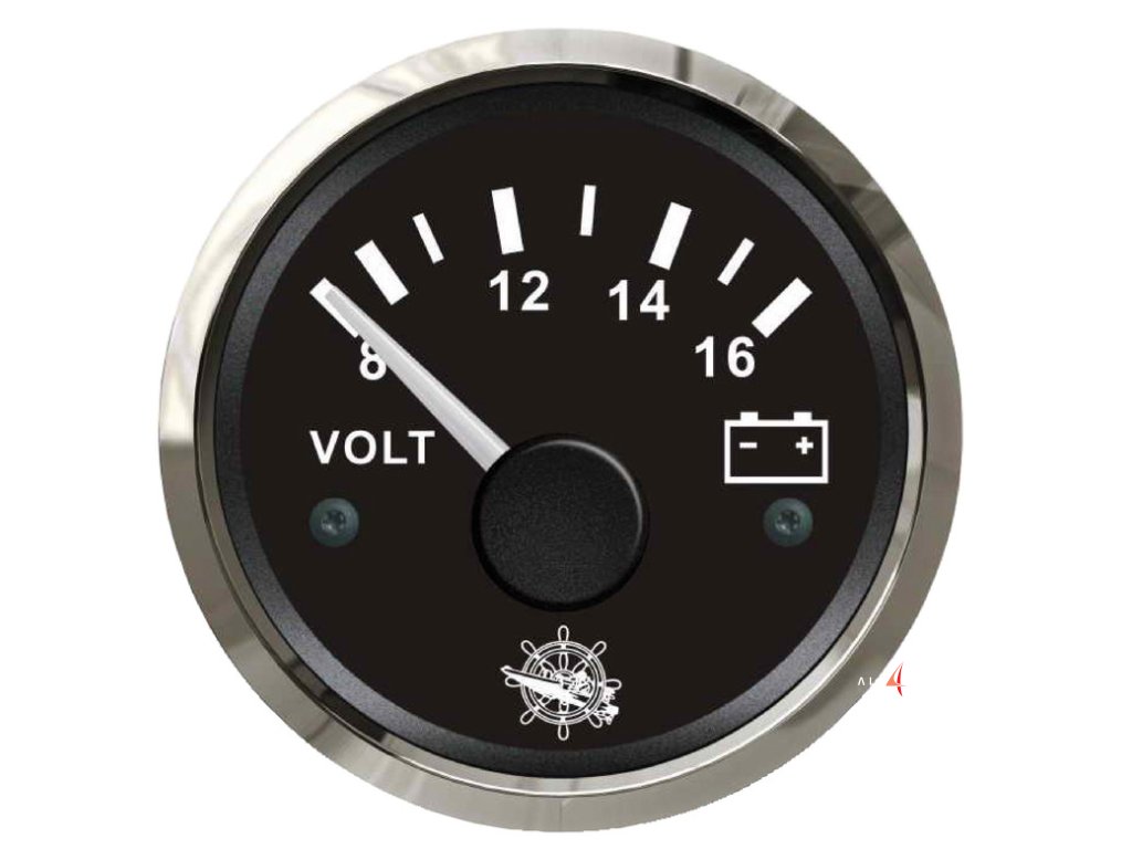 Voltmetr 8/16V, otvor Ø 51mm. Červeně a žlutě podsvícený ciferník.