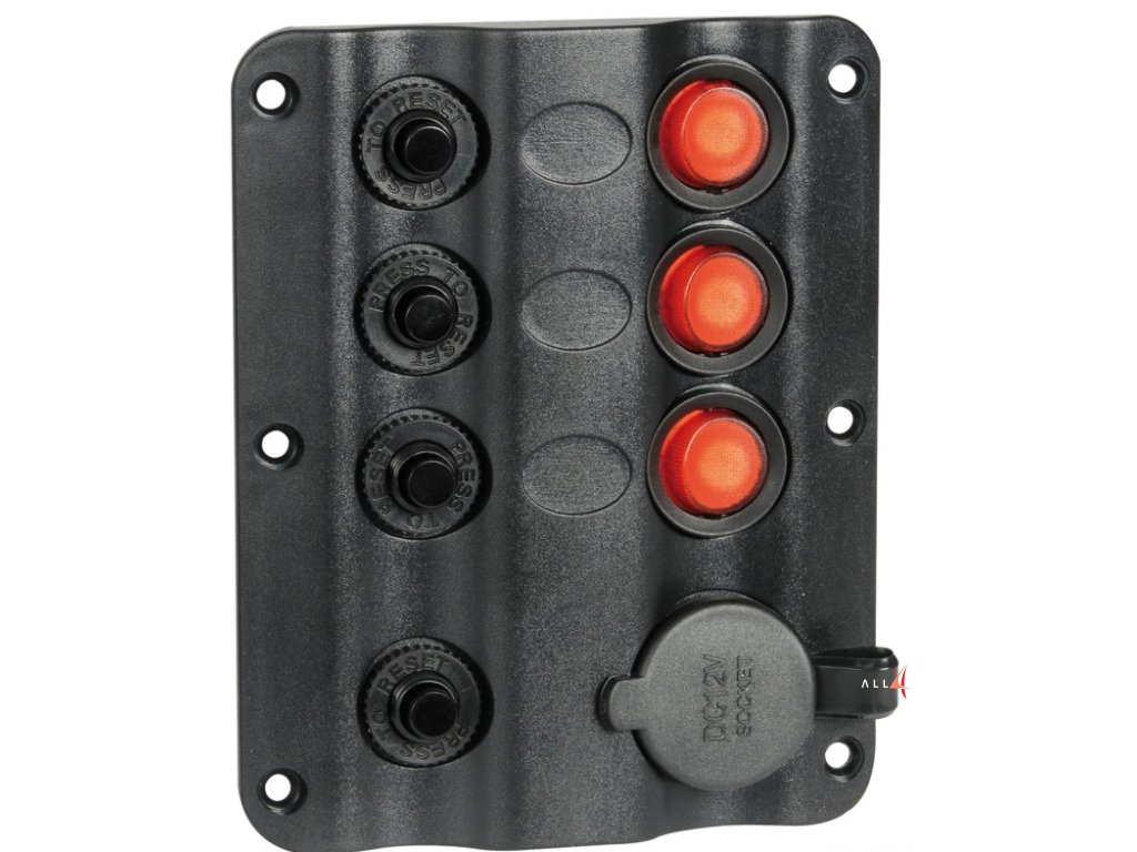 Vyrobeno z černého plastu, vybaveno přepínači a resetovatelnými tepelnými automatickými pojistkami. Vybaveno zapalovačovou zásuvkou a nalepovacími štítky pro identifikaci různých připojených zařízení.