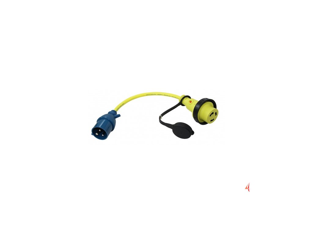 Zástrčka CEE na spojku NEMA L6, silné gumové hadicové vedení H07BQ-F 3G 2,5 mm2 se zástrčkou CEE 230 V - 16 A - 3kolíková a spojkou NEMA L6 s ochranným krytem a kontrolkou LED, ochrana proti stříkající vodě IP44.